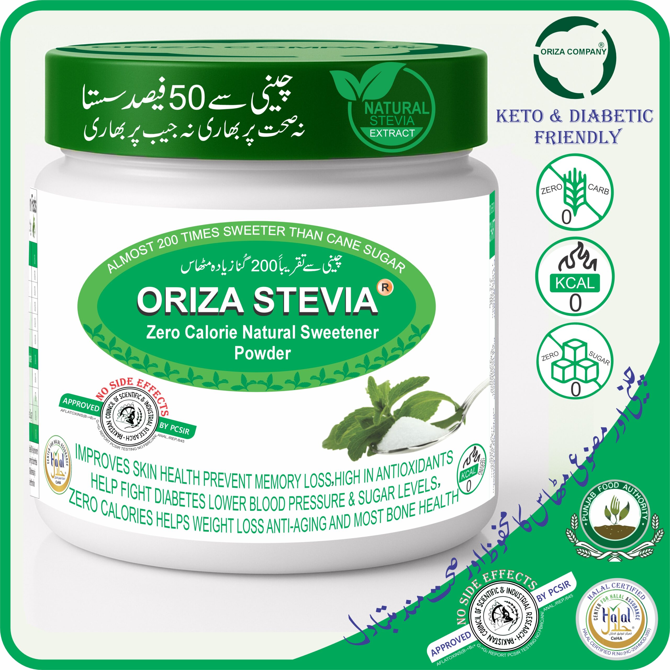 ORIZA STEVIA HALAL,PFA, & PCSIR CERTIFIED ( ZERO CALORIE NATURAL SWEETENER ) EXTRACT POWDER , KETO & DIABETES FRIENDLYORIZA STEVIA HALAL,PFA, & PCSIR CERTIFIED ( ZERO CALORIE NATURAL SWEETENER ) EXTRACT POWDER , KETO & DIABETES FRIENDLY